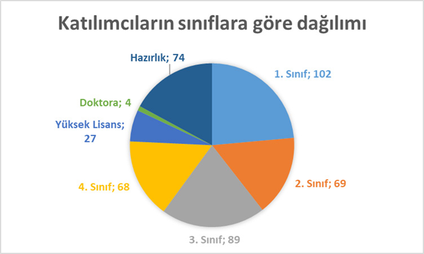 Ankete katılan kişilerin sınıflarına göre dağılımları grafik 3’te gösterildiği gibidir.